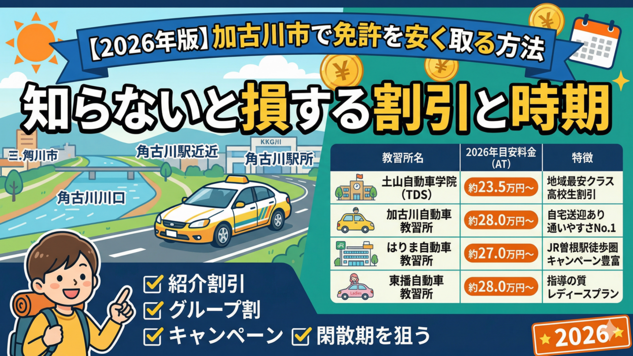 実は、教習所の料金は「どこに通うか」より「どうやって申し込むか」のほうが大きく影響します。同じ教習所でも、知っているかどうかで数万円の差が出ることもあります。この記事では、加古川市で免許をできるだけ安く取るための方法を、わかりやすくまとめました。